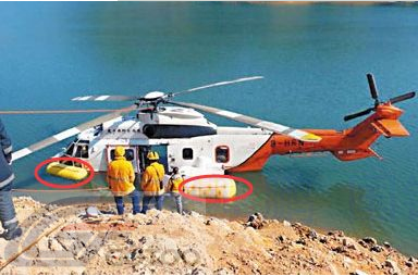 Helicopter floating bag water test system