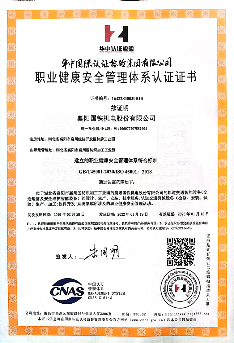 職業健康安全管理體系認證證書