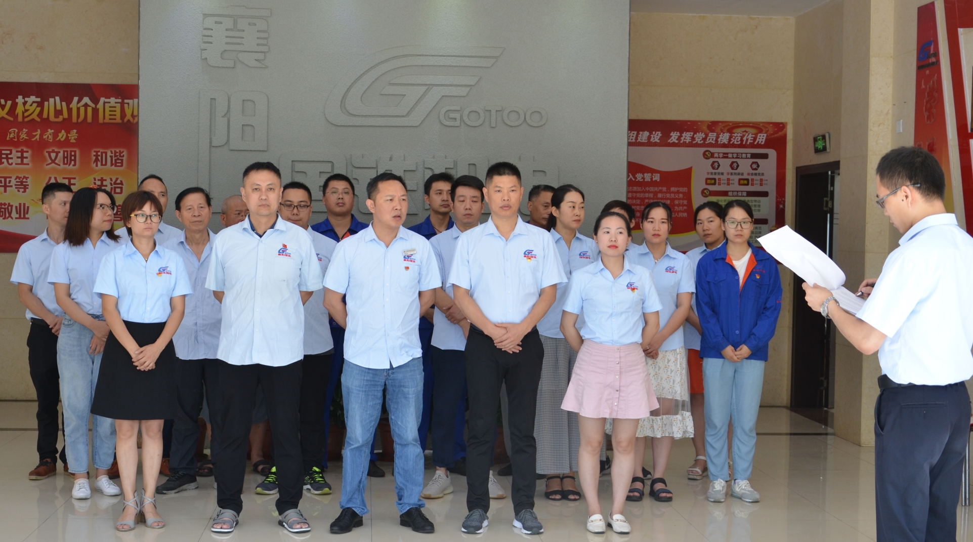 “我志愿加入中國共產(chǎn)黨,擁護黨的綱領(lǐng),遵守黨的章程,履行黨員義務(wù),執(zhí)行黨的決定,嚴守黨的紀律,保守黨的秘密,對黨忠誠,積極工作,為共產(chǎn)主義奮斗終身,隨時準備為黨和人民犧牲一切,永不叛黨。“祝中國共產(chǎn)黨建黨98周年節(jié)日快樂。在黨支部書記的領(lǐng)誓下,大家高舉右手莊嚴宣誓,重溫入黨宣誓的莊嚴承諾和堅定決心。