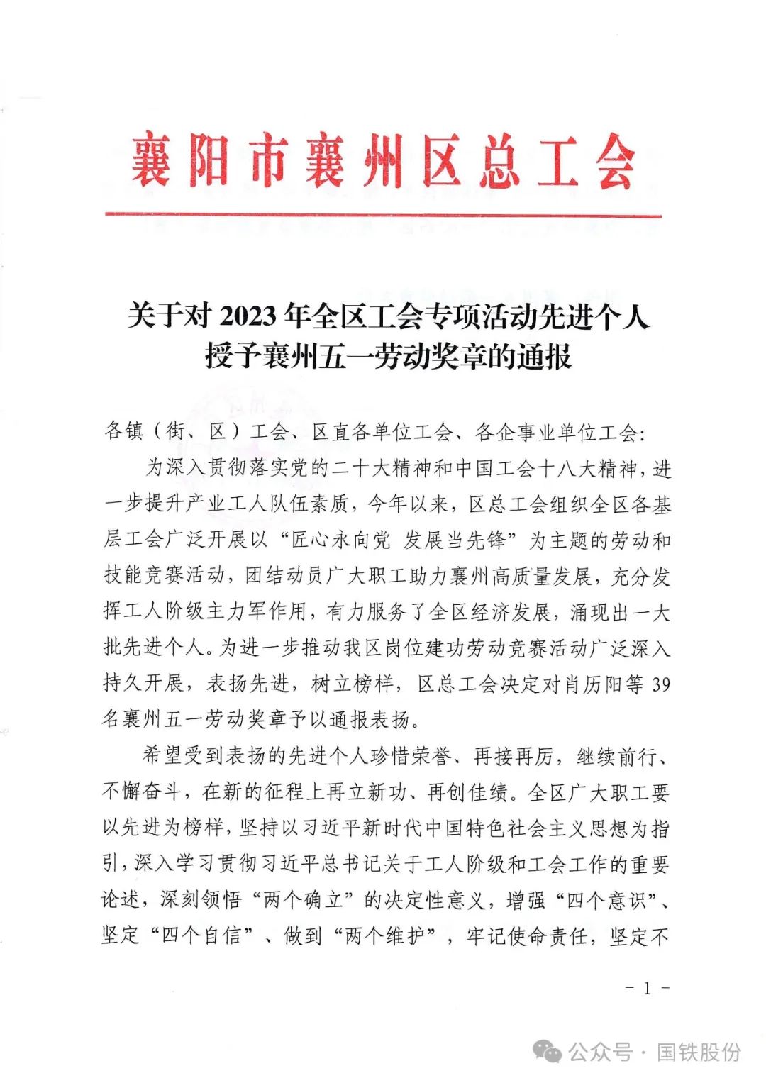 【喜報】恭賀楊定全同志獲“襄州五一勞動獎章”榮譽